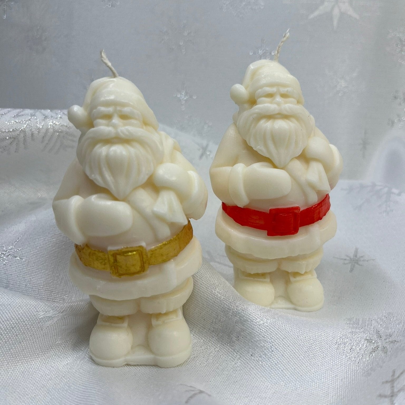- Bezzapachowa, ręcznie malowana świeca w kształcie św. Mikołaja.